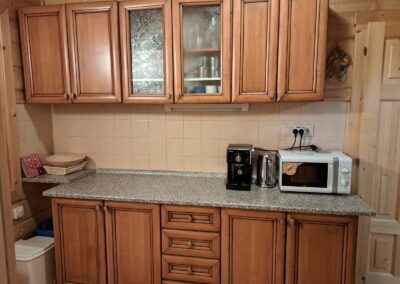 Veľká chata s kapacitou 16 lôžok je moderne zariadená s plne vybavenou kuchyňou, pohodlnou spoločenskou miestnosťou s jedálenskou a oddychovou zónou a kachľovou pecou, jednou spálňou na prízemí, štyrmi spálňami na poschodí, dvomi toaletami a kúpeľňou s dvomi sprchovacími kútmi. Vonkajší priestor s ohniskom a vonkajším sedením Vám ponúka možnosť romantického posedenia pri ohni ako aj varenia, opekania a grilovania.
