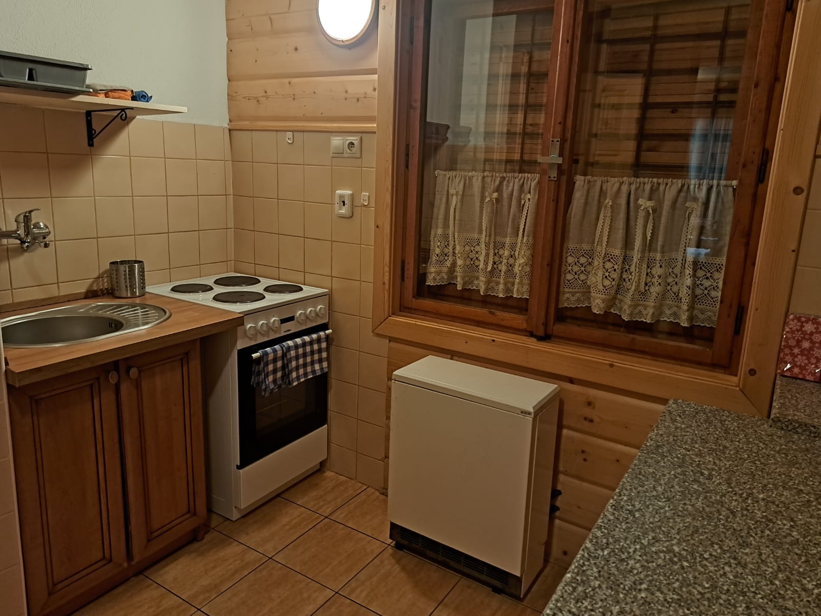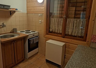 Malá chata s kapacitou 8 lôžok so šarmom klasickej lesnej chaty má kuchyňu, spoločenskú miestnosť s krbom, toaletu, kúpeľňu a dve spálne v podkroví. Vonkajší priestor s ohniskom a vonkajším sedením Vám ponúka možnosť romantického posedenia pri ohni ako aj varenia, opekania a grilovania.