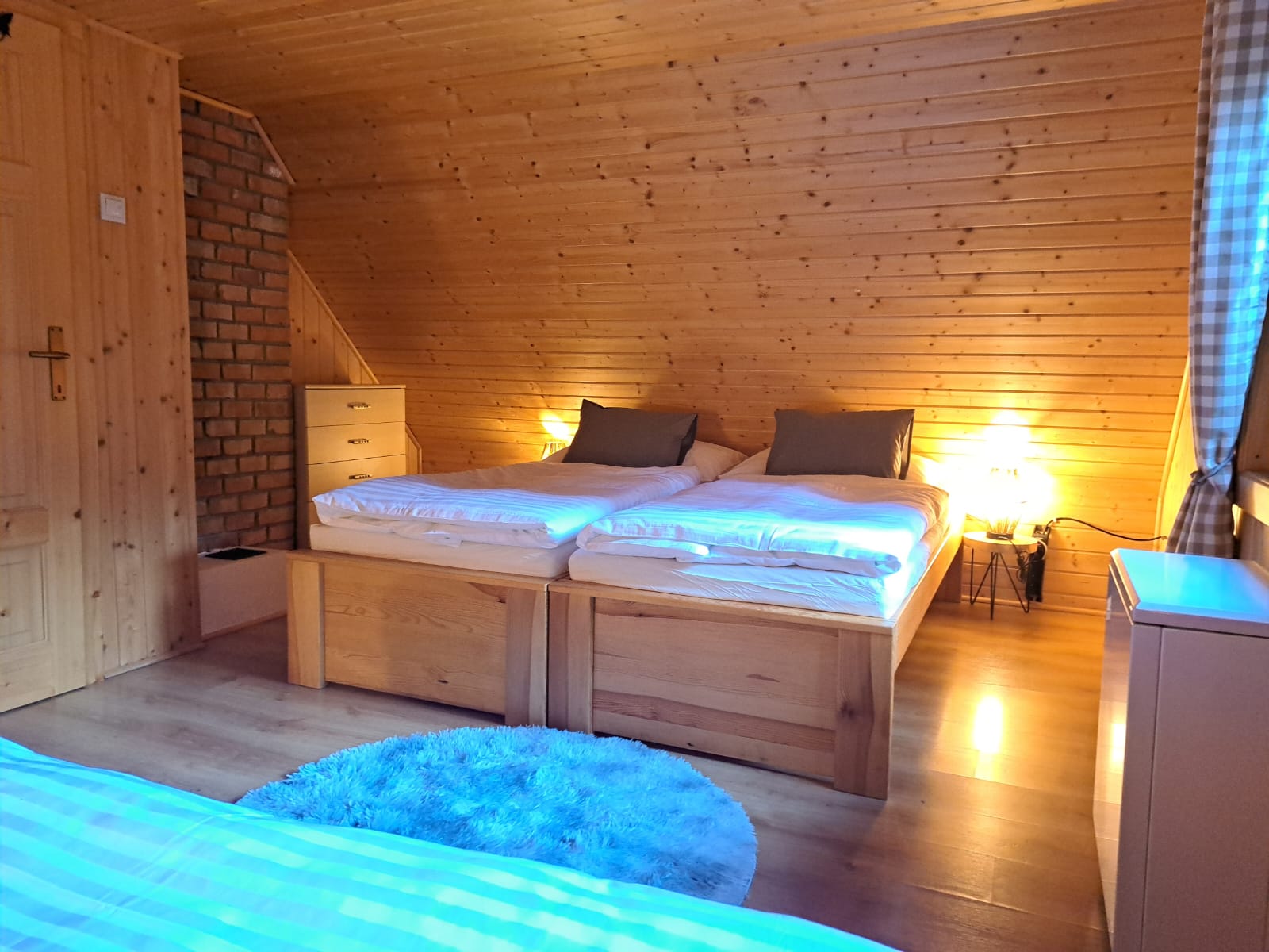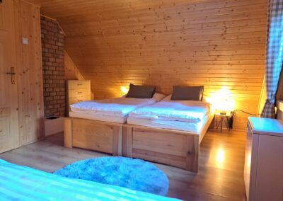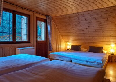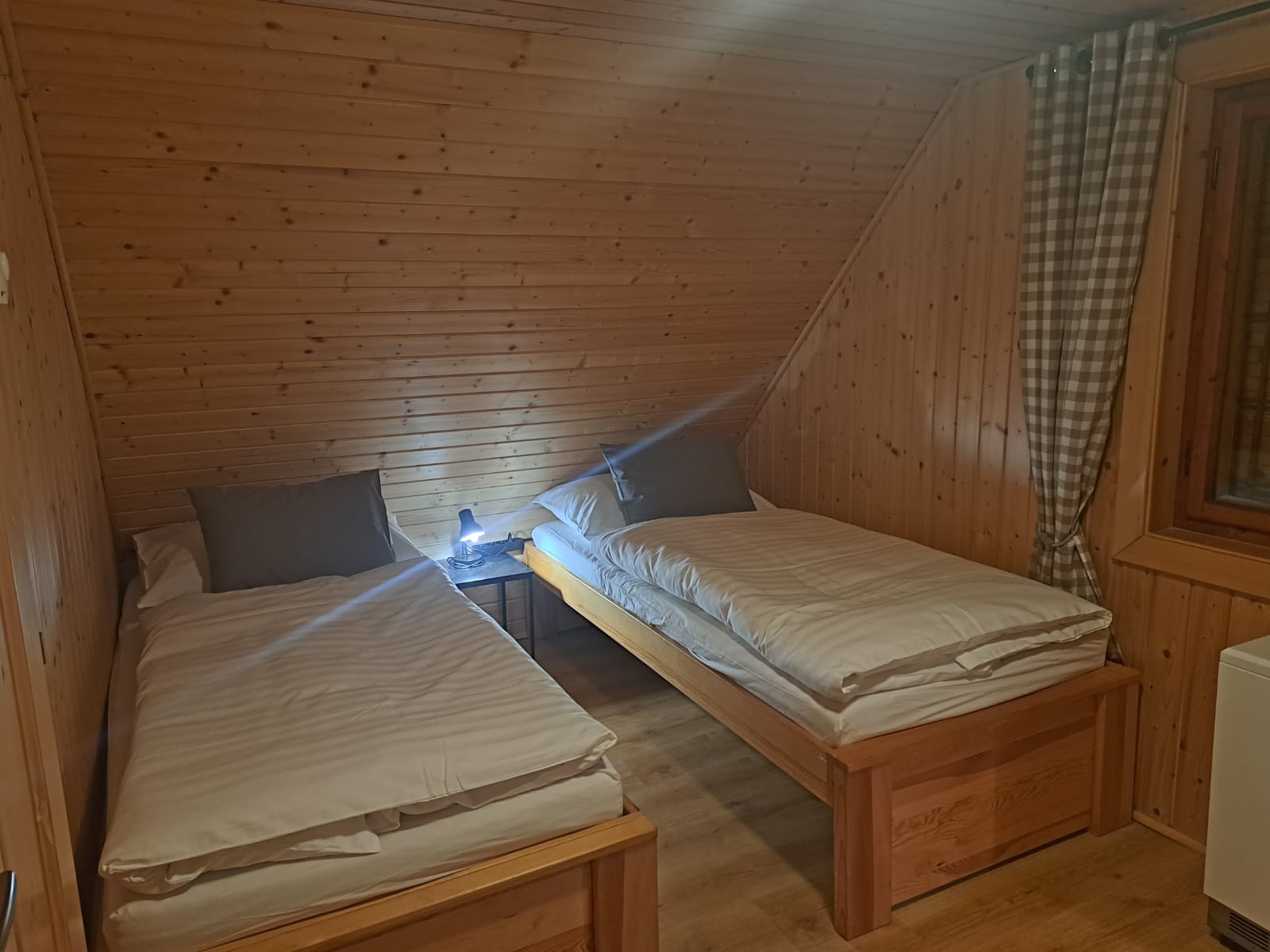 | Spálňa 1 v podkroví - 1 x manželská posteľ, 1x jednolôžko |